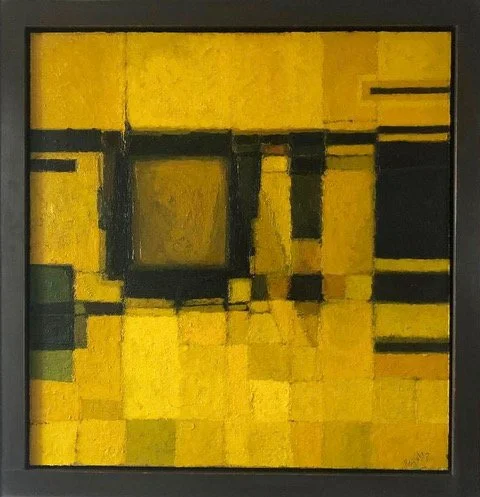 Alan Reynolds, Forms Polyphonic - Yellow and Black, oil on board